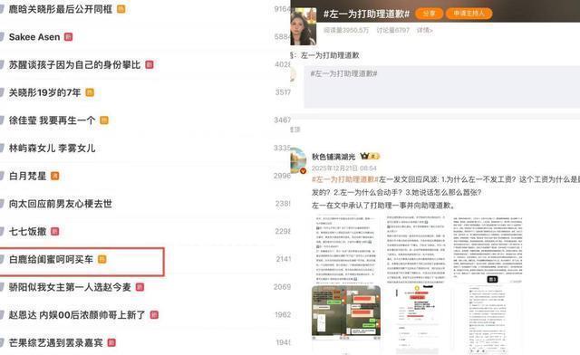 搜狐娱乐专稿(庄自修/文) 昨日,演员白鹿为相识十年的闺蜜兼助理“呵呵”赠送汽车一事,火速登上热搜引发全网热议。 同样是艺人与助理的相处日常,前不久却曝出截然相反的新闻——一位短剧艺人因区区几千元薪资纠纷,对助理大打出手,闹剧闹得人尽皆知。 在许多年轻网友的想象里,艺人助理是份自带光环的职业:能近距离接触偶像、陪同出席星光熠熠的红毯、出入高端场合、奔赴海外行程,甚至能像白鹿与呵呵这般,与艺人成为惺惺相惜的挚友。 可当我们走近那些曾任职艺人助理的从业者,才得以窥见这份职业的真实底色——薪资微薄、24小时随时待命,不少人还被迫身兼“佣人”的角色,在光鲜表象下默默承受着不为人知的困境。 1.0、工作常态 在早先艺人与助理互殴事件中,暴露出艺人与助理之间的多重矛盾。 据新闻报道,那名短剧艺人不仅长期拖欠工资、拒不报销助理垫付的各项费用,还在日常生活中频繁安排高强度且不合理的工作任务。更甚者,助理最终遭到随意解雇,而当他试图通过合理途径维权时,竟遭遇了艺人的暴力对待。 曾任职艺人助理的宗宗对此深有体会,他直言:“艺人助理这活,确实没表面那么好干。” 另一位前艺人助理小东则透露,艺人助理行业的分类与配置存在显著差异: 头部大咖艺人的助理团队分工精细,涵盖经纪、商务、宣传、生活等多个专项领域,团队规模甚至可达数十人;而中小艺人通常仅配备一两名工作人员,这些人往往需要身兼数职,包揽所有与助理相关的工作内容。 对艺人助理而言,“跟商务”与“跟组”是两项核心且关键的工作,无论哪一项,日常内容都极为琐碎繁杂。